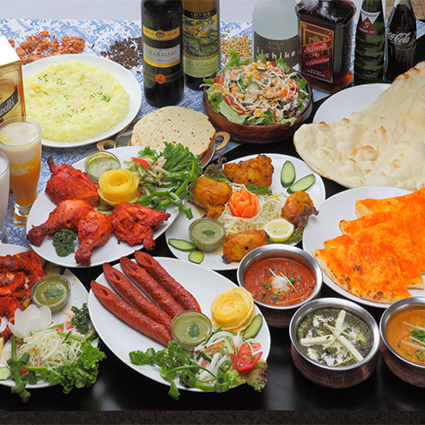 インド料理専門店ならではの厳選した数十種類のスパイスを使用し、本場5つ星シェフによる野菜ベースルーを使ったインドカレーはじめ、本格的な炭火かまどで焼き上げた健康と美と美味しさに溢れる逸品の数々を味わっていただけます。また、お料理によく合うインドビール、インドワイン、インドウィスキーなどアルコールも多数ご用しています。